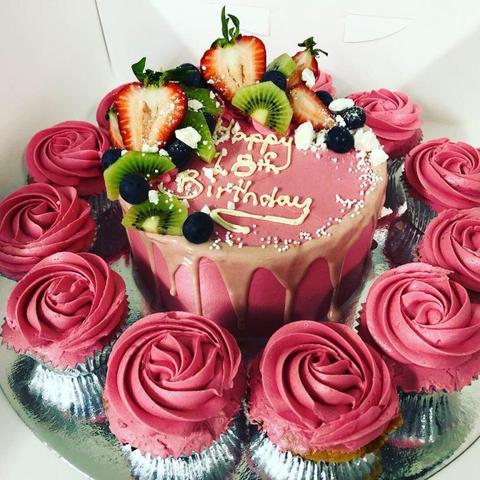A delicious small cake with 12 cupcakes, available in vanilla or chocolate flavour and iced with your preferred colour and short message.